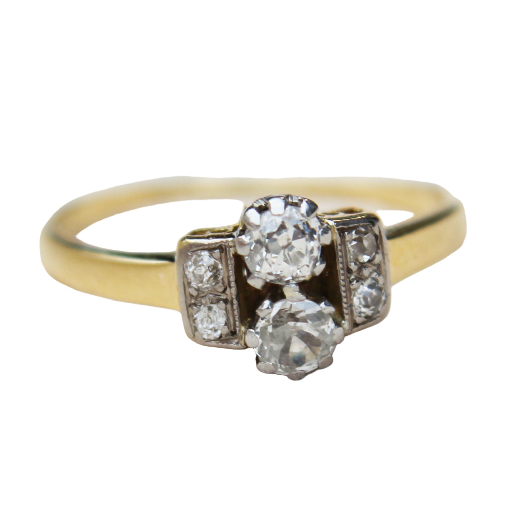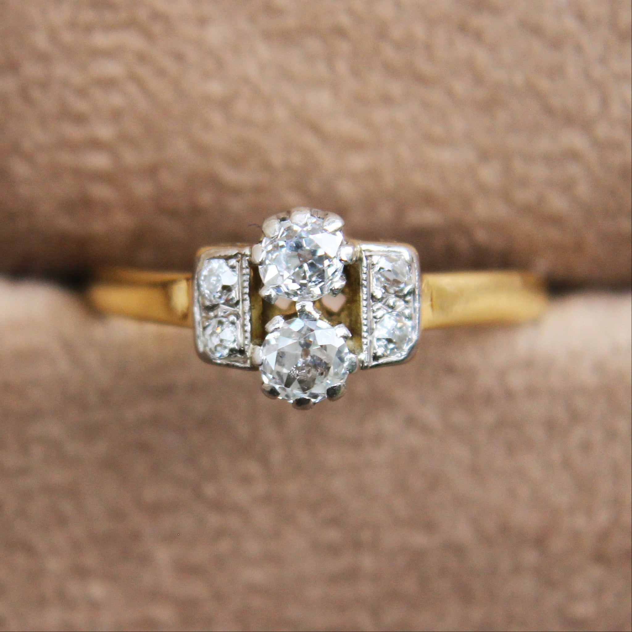 Art Deco 1920s Old Cut Diamond Two Stone Ring