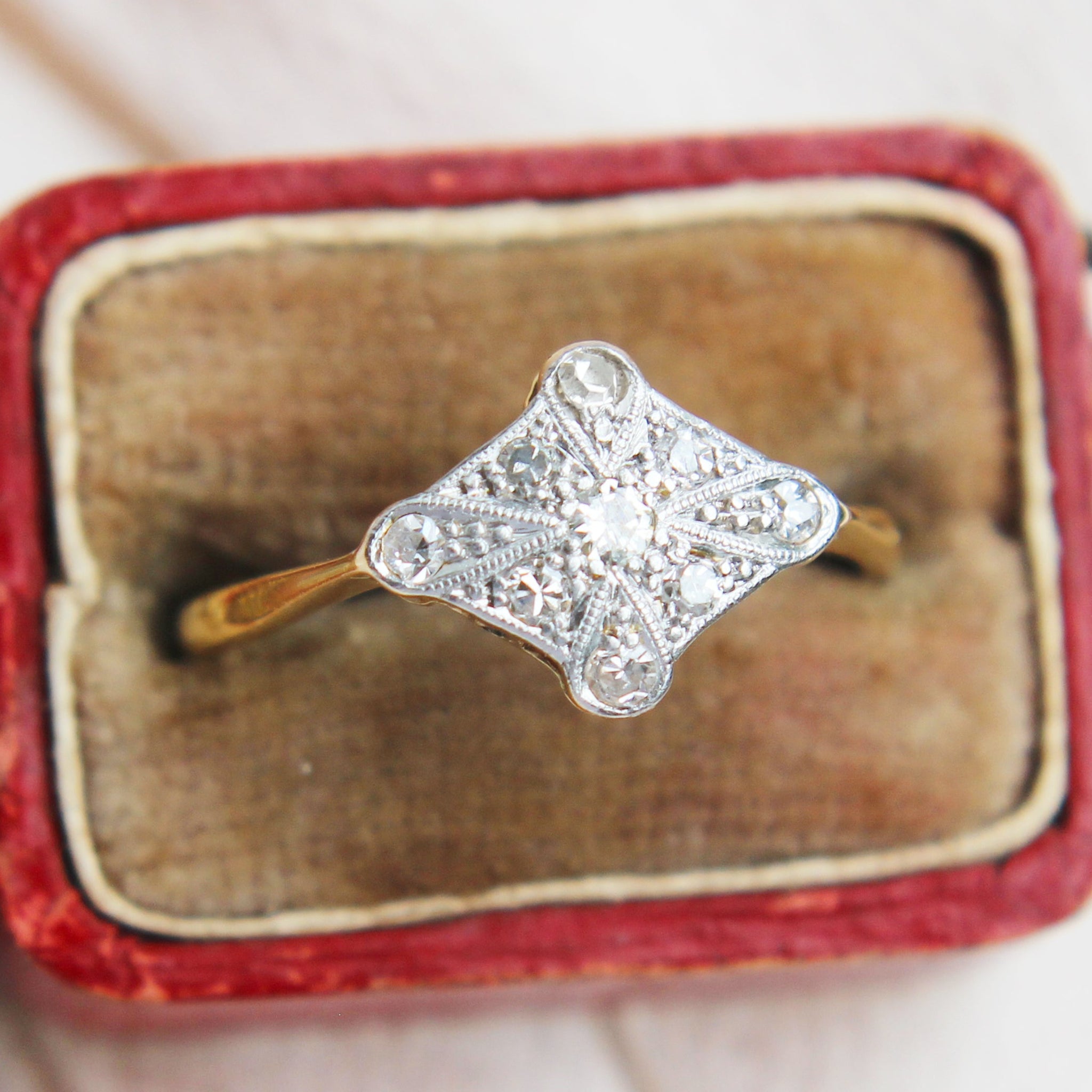 Art Deco 1920s Sapphire and Diamond Cluster Ring