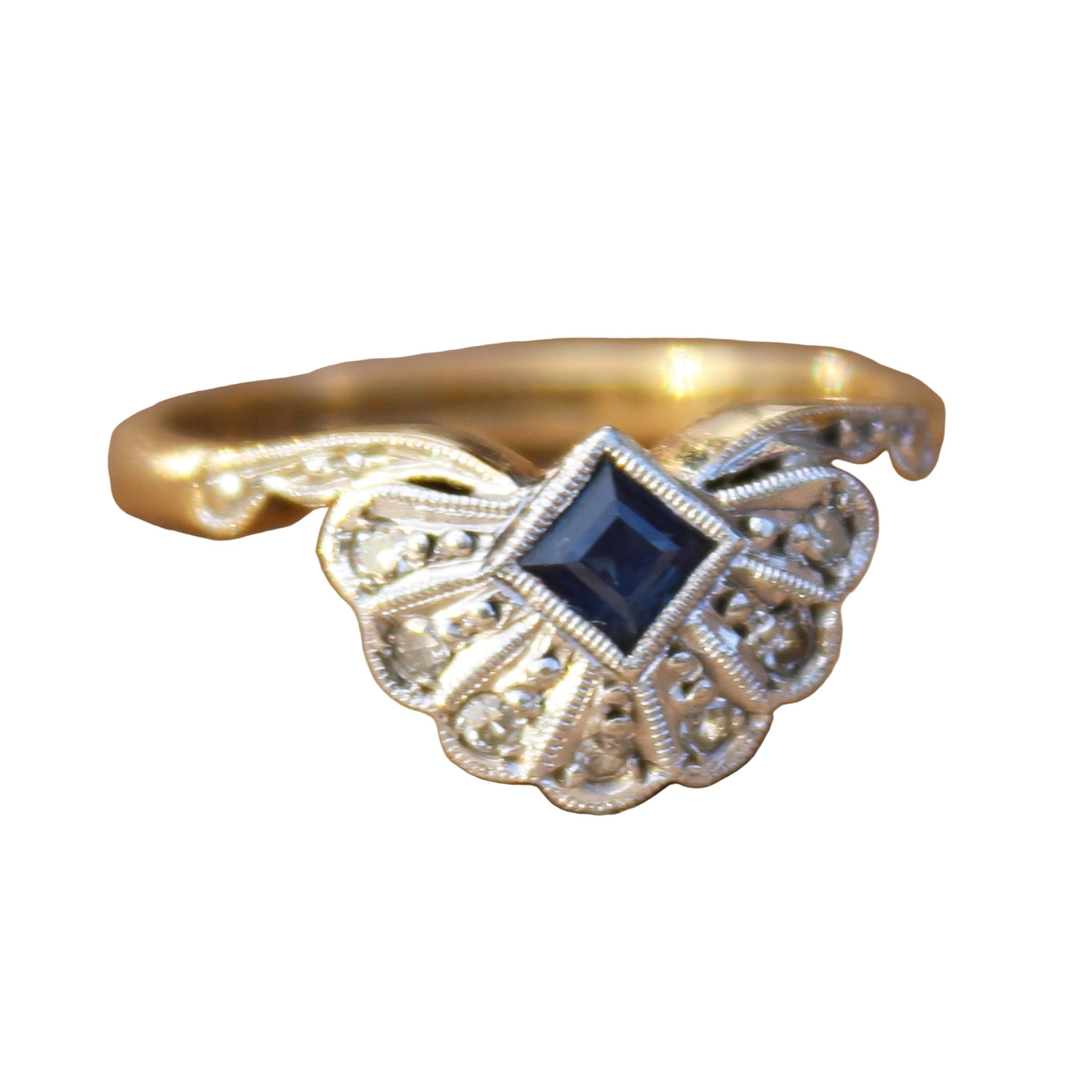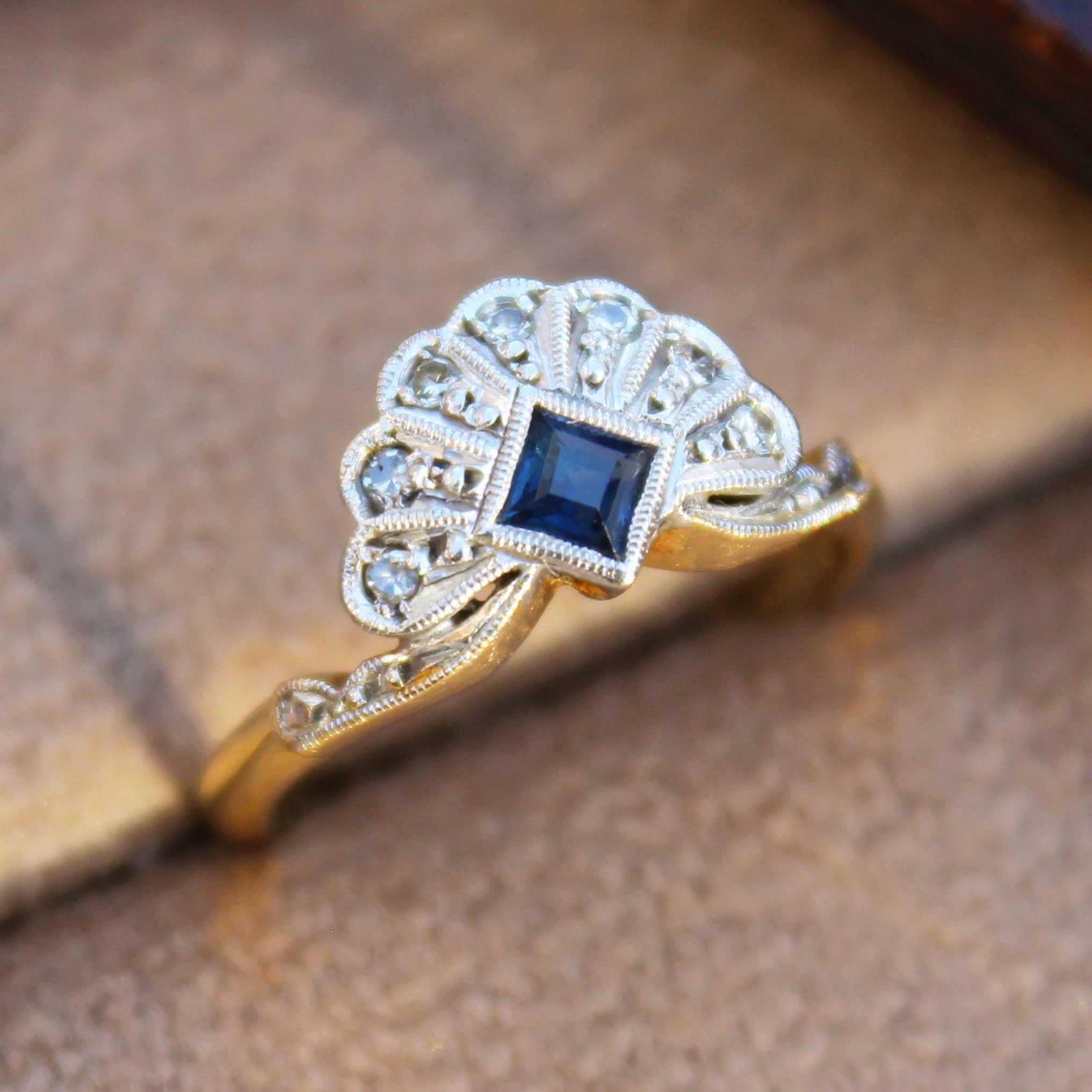 Art Deco 1920s Sapphire and Diamond Fan Ring