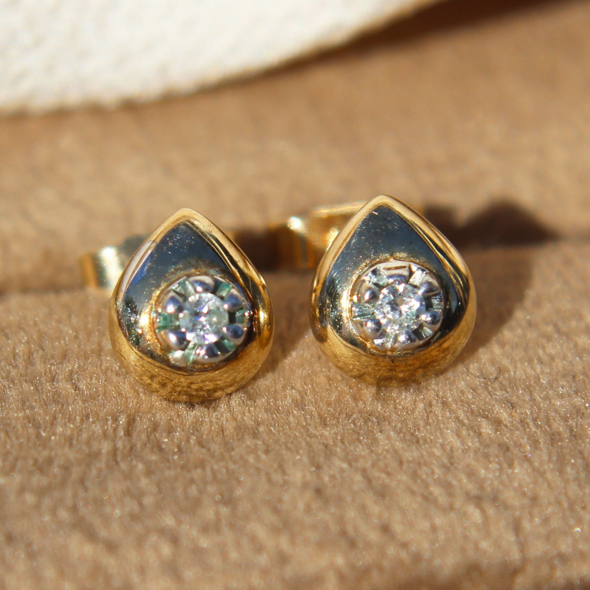 Vintage Diamond Teardrop Stud Earrings