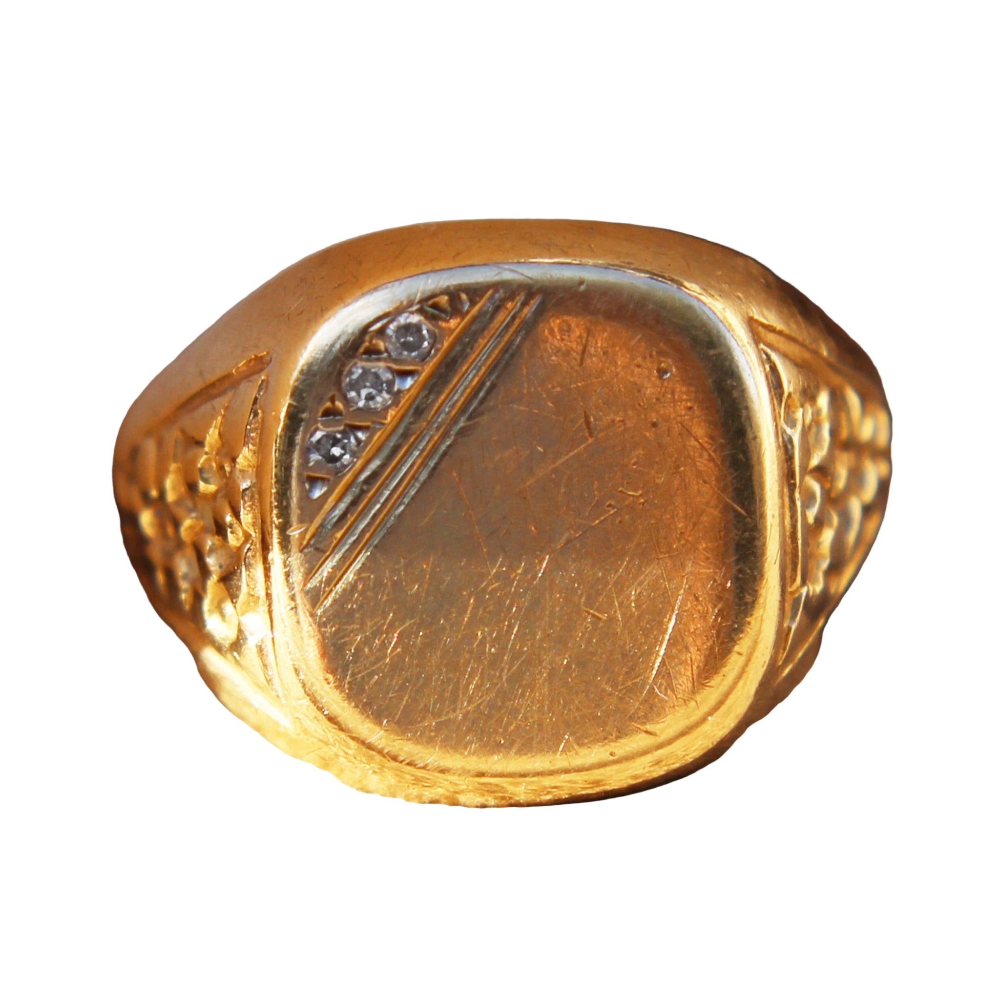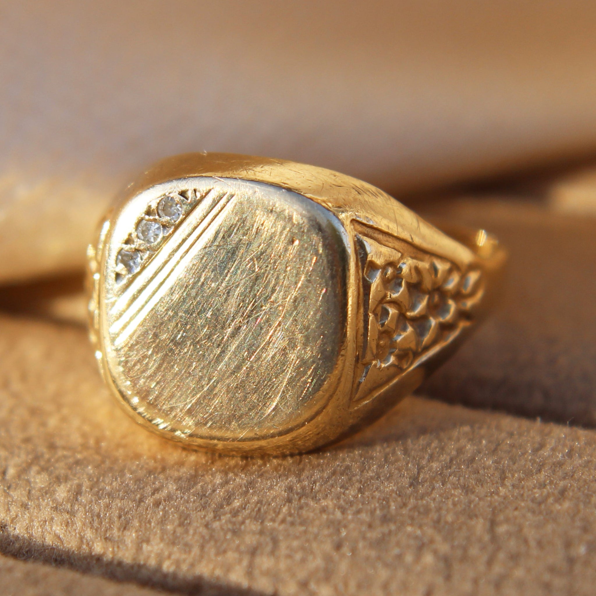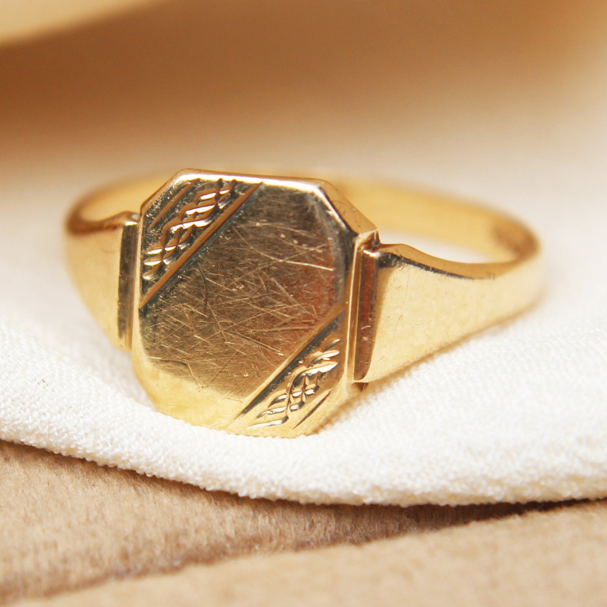 Vintage Cushion Shaped Engraved Signet Ring