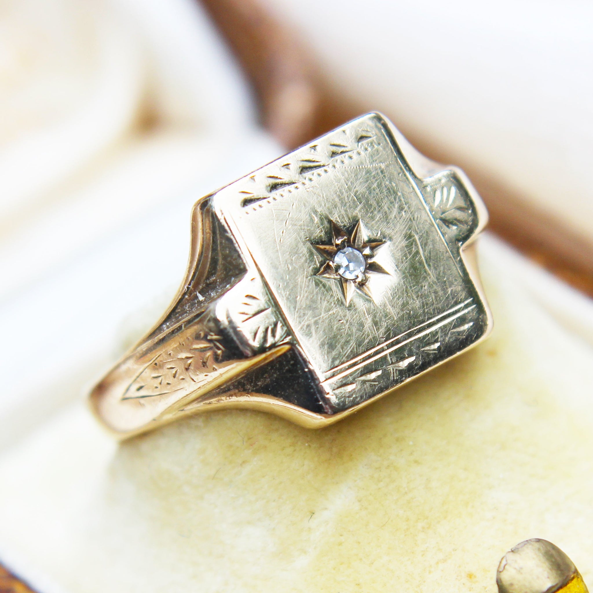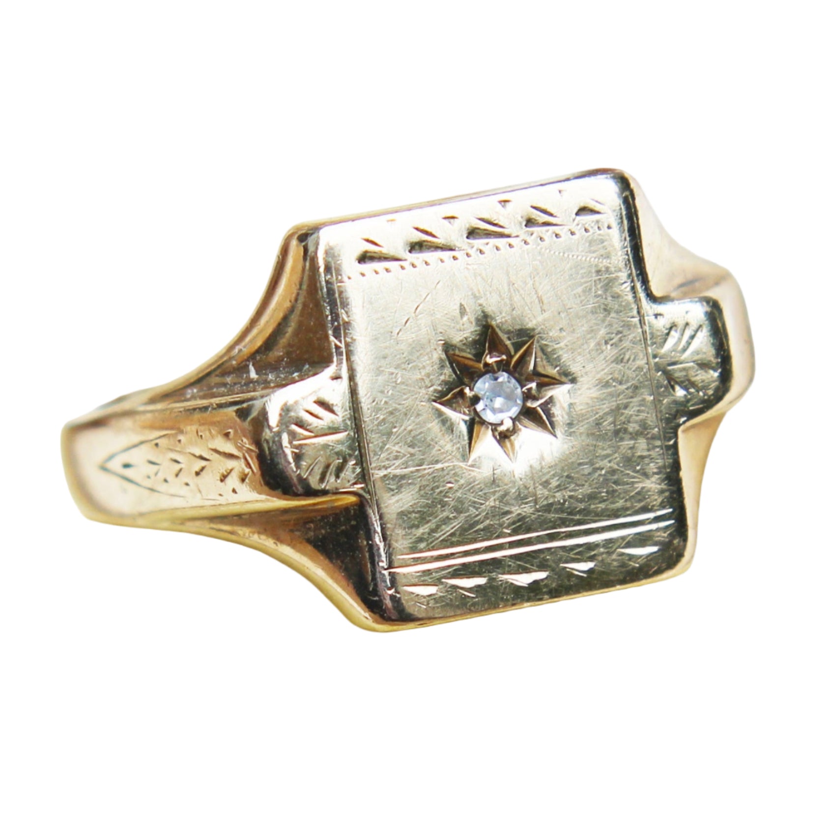 Vintage Rectangular Signet Ring 9ct Yellow Gold
