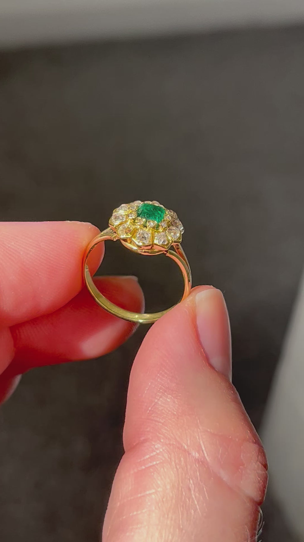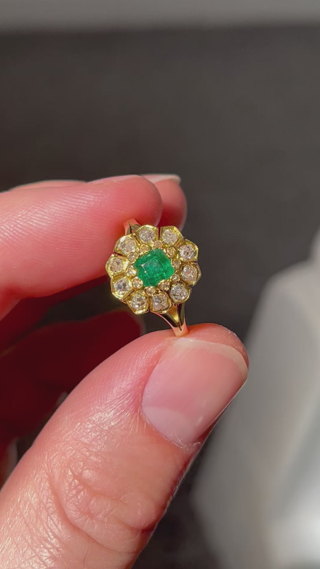 Victorian Emerald and Diamond Cluster Ring